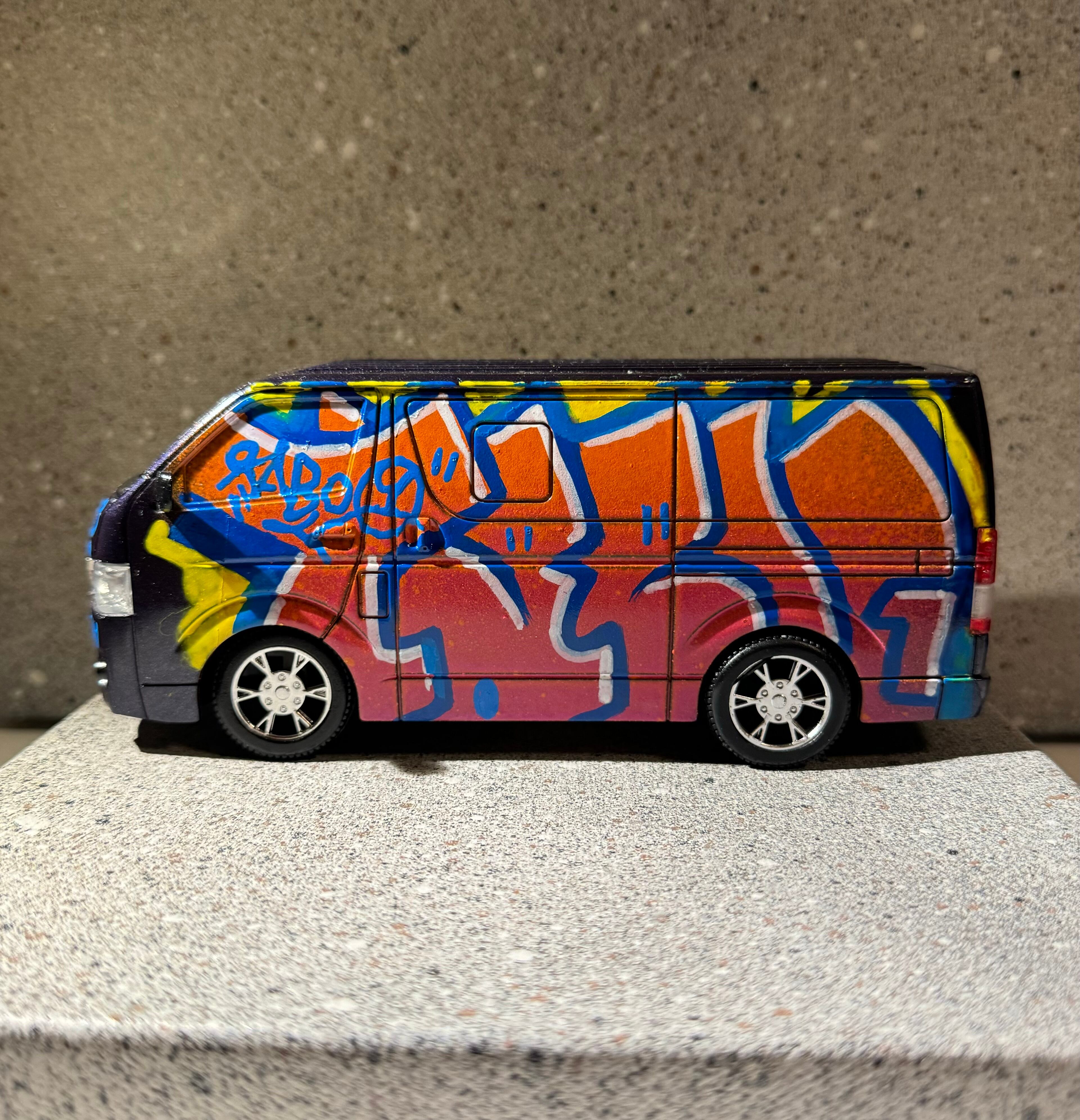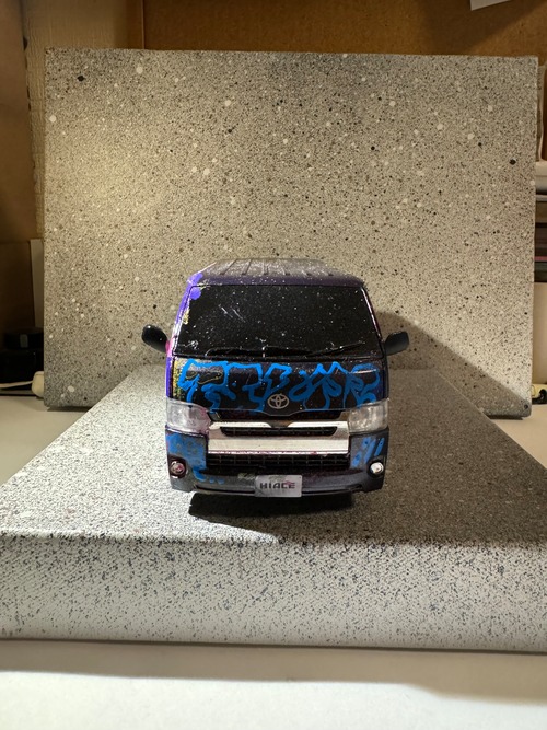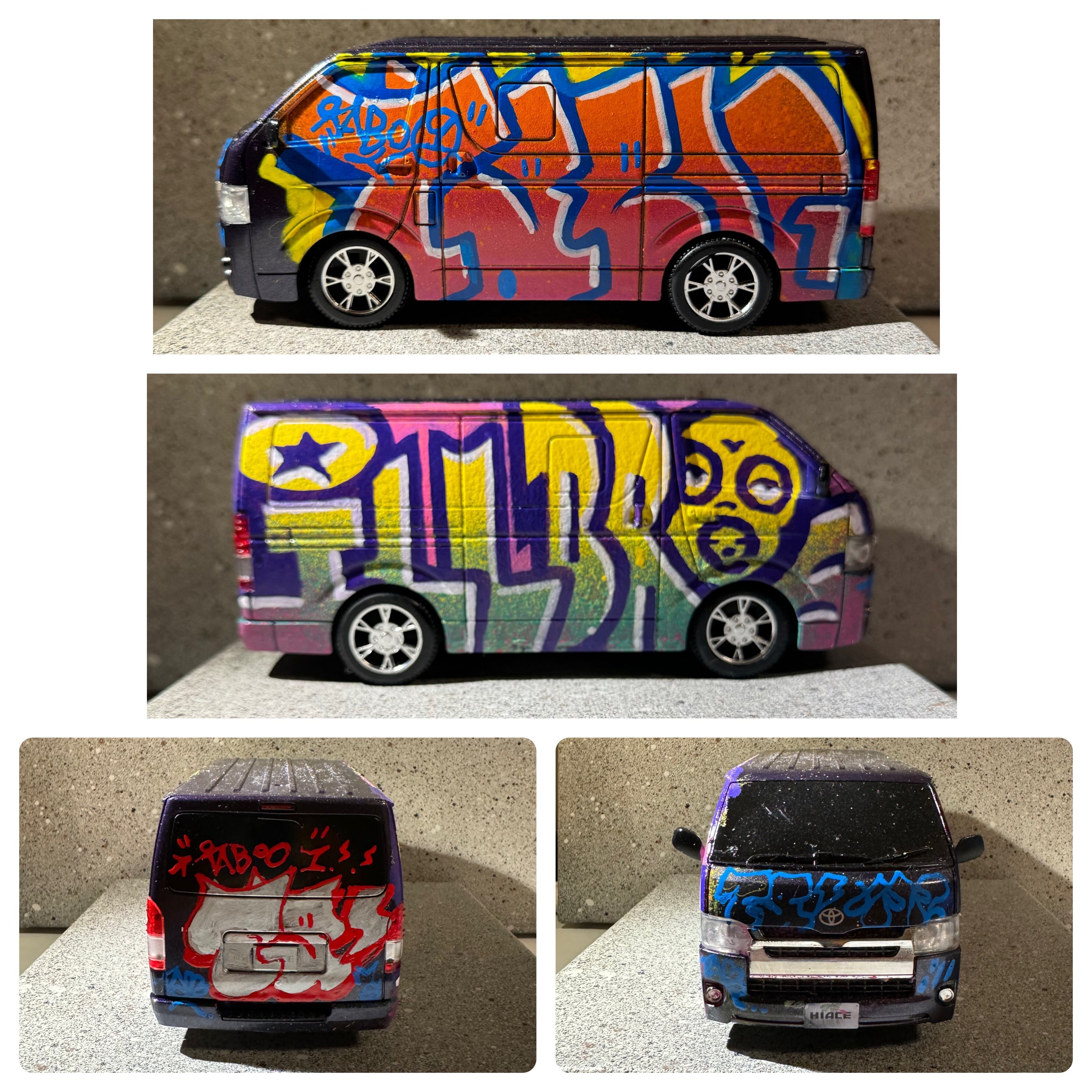 本人自筆カスタムラジコンカー(10台限定) 縦幅20×横幅9×高さ8cm HIACEのラジコンとリモコン(電池入り)付き。